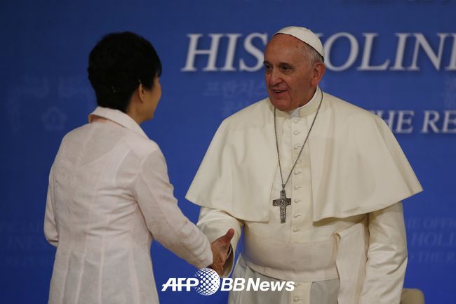 4박5일 일정으로 방한한 프란치스코 교황은 이날 11시간이 넘는 장기간의 비행에도 불구하고 온화한 미소를 지어보였다. 직접 영접한 박근혜 대통령이 "교황 방한 계기로 따뜻한 위로가 전해지고 분단과 대립의 한반도에 평화와 화해의 시대가 열리길 바란다"고 말하자 교황은 "마음 속에 깊이 간직하고 왔다"고 화답했다.