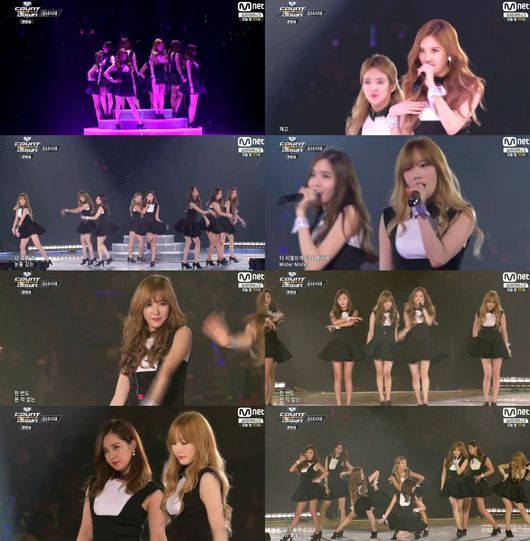 소녀시대는 14일 오후 방송된 Mnet '엠카운트다운'에서 곡 '미스터 미스터', '미스터 택시', '지(Gee)'의 무대를 꾸몄다.