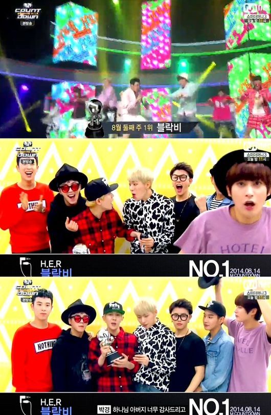 블락비는 14일 오후 방송된 Mnet '엠카운트다운'에서 걸그룹 씨스타를 누르고 1위에 올랐다.