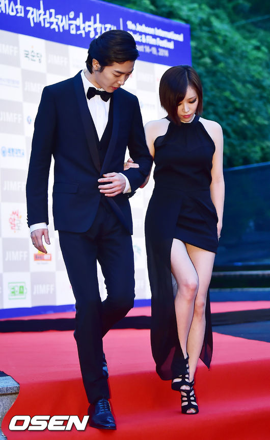 14일 오후 충청북도 제천시 청풍면 청풍호반 야외무대에서 제천국제음악영화제 개막식 및 레드카펫 행사가 열렸다. 김재욱과 가인이 레드카펫을 밟고 있다.