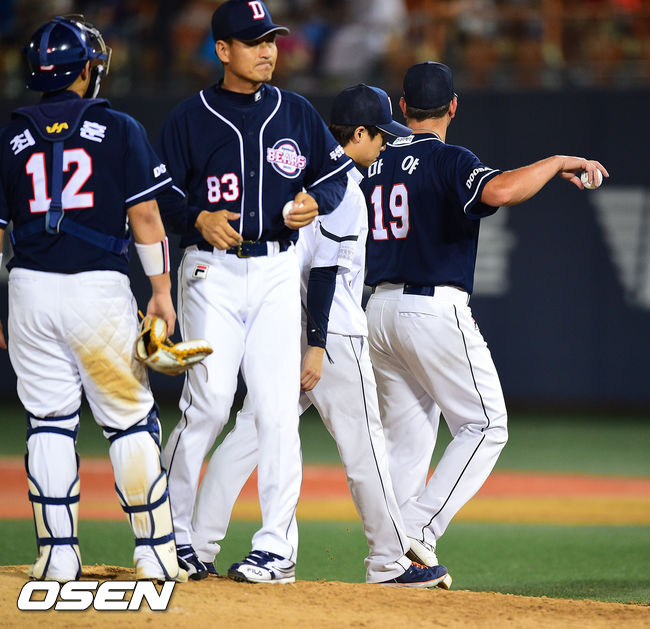 14일 오후 서울 목동구장에서 열리는 2014 한국야쿠르트 세븐 프로야구 넥센 히어로즈와 두산 베어스의 경기,5회말 두산 선발투수 마야가 강판되고 있다. 마야는 이날 4이닝 7실점 기록했다.