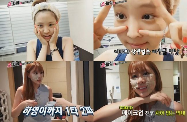 멤버들의 저항도 만만찮았다. 이들은 민낯을 사수하기 위해 보미의 카메라를 피했지만 역부족이었다. 그런 가운데 나은은 뽀얀 피부, 뚜렷한 이목구비로 '여신급 민낯'을 보여줬고, 하영은 팩을 붙였음에도 메이크업 전후가 차이 없는 '막내의 위엄'을 뽐냈다.
