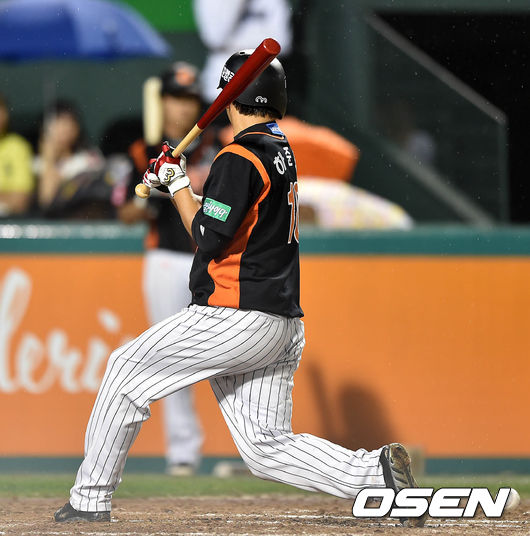 6회초 2사 만루에서 롯데 하준호가 한화 정대훈의 투구에 맞고 있다.