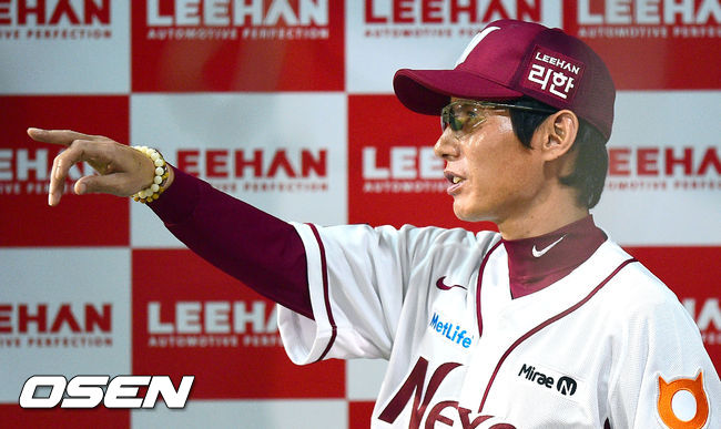 14일 오후 서울 목동구장에서 열리는 2014 한국야쿠르트 세븐 프로야구 넥센 히어로즈와 두산 베어스의 경기,넥센 염경엽 감독이 작전 지시를 하고 있다.