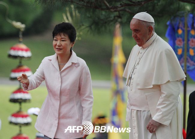 4박5일 일정으로 방한한 프란치스코 교황은 이날 11시간이 넘는 장기간의 비행에도 불구하고 온화한 미소를 지어보였다. 직접 영접한 박근혜 대통령이 "교황 방한 계기로 따뜻한 위로가 전해지고 분단과 대립의 한반도에 평화와 화해의 시대가 열리길 바란다"고 말하자 교황은 "마음 속에 깊이 간직하고 왔다"고 화답했다.