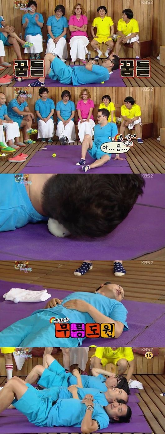 이날 지상렬은 테니스공, 골프공, 야구공을 가지고 와서 집에서 홀로 TV를 보면서 마사지를 할 수 있는 자신만의 노하우를 선보였다. 테니스공으로는 등 뒤에 놓고 몸을 움직이며, 골프공은 발바닥에 놓고, 야구공은 누워서 목 뒤에 놓은 채 셀프 마사지를 선보여 눈길을 끌었다.