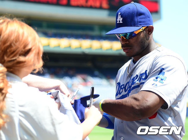 다저스 푸이그가 팬들에게 사인을 해주고 있다.