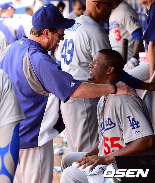 다저스 허니컷 코치와 에르난데스가 이야기를 나누고 있다./youngrae@osen.co.kr