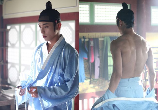 tvN 일요드라마 '삼총사'(극본 송재정, 연출 김병수) 측은 15일, 강원도 무인 출신의 열혈 초보 무관 박달향 역 정용화의 '상투 등근육' 스틸을 공개했다.