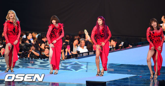 네 사람은 15일 오후5시부터 서울 상암 월드컵경기장에서 열린 ‘SM타운 라이브 월드투어 인 서울’ 공연에서 걸스데이의 ‘섬씽’을 선보이며 화끈한 여장을 소화했다.