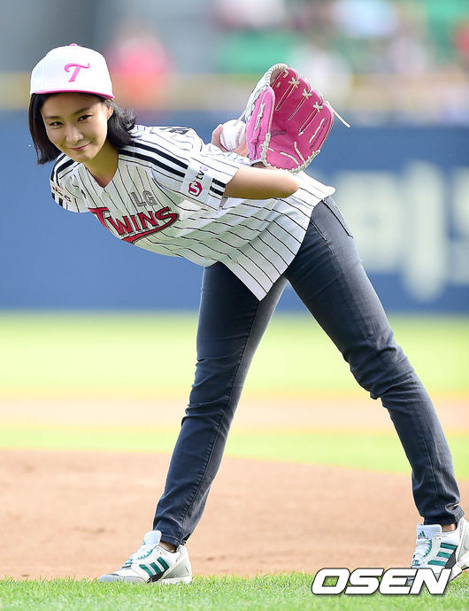 시구자로 나선 배우 박효주가 사인을 보내고 있다.