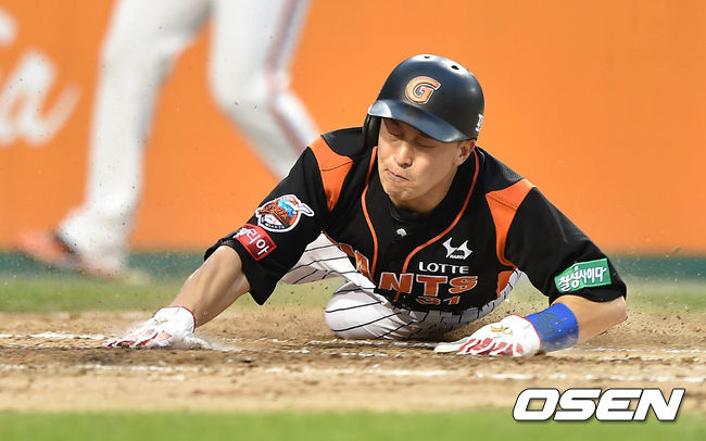 3회초 2사 1,2루에서 롯데 박종윤의 우전 안타때 1루루자 손아섭이 홈으로 쇄도해 세이프 되고 있다.