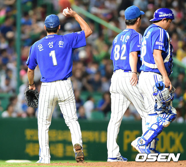 15일 오후 인천 문학구장에서 열린 '2014 한국야쿠르트 세븐 프로야구' SK 와이번스와 삼성 라이온즈의 경기 5회말 2사 2루 나주환에게 투런홈런을 허용한 윤성환이 마운드를 내려가고 있다.