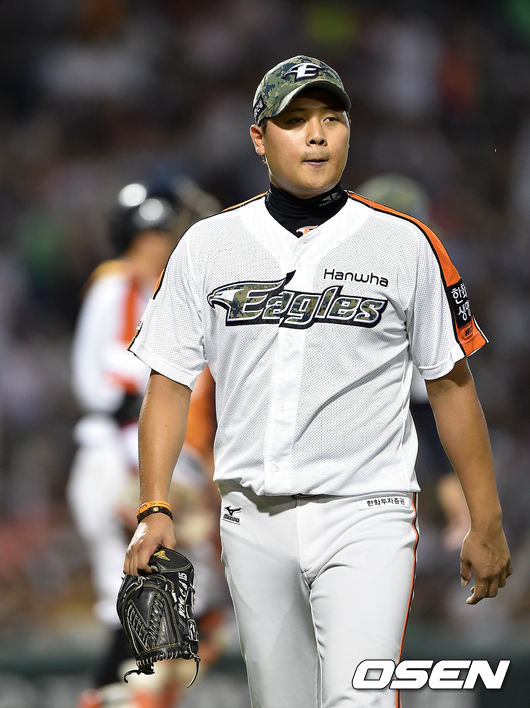 5회초 1사 1,2루에서 롯데 황재균에게 중전 적시타를 허용한 한화 유창식이 마운드를 내려가고 있다.
