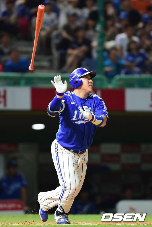 15일 오후 인천 문학구장에서 열린 '2014 한국야쿠르트 세븐 프로야구' SK 와이번스와 삼성 라이온즈의 경기 8회초 무사 1루 최형우가 투런 홈런을 치고 있다.