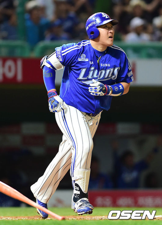 15일 오후 인천 문학구장에서 열린 '2014 한국야쿠르트 세븐 프로야구' SK 와이번스와 삼성 라이온즈의 경기 8회초 무사 1루 최형우가 투런포를 치고 달리고 있다.