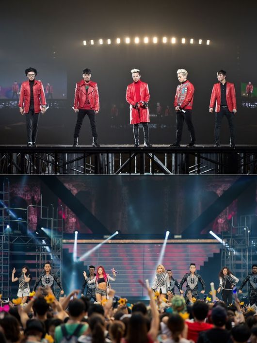 이날 YG패밀리는 다양한 콜라보레이션 무대를 이어갔다. 특히 빅뱅은 2NE1의 노래를 그들만의 스타일로 소화하면서 특별한 무대를 꾸며 시선을 집중시켰다.