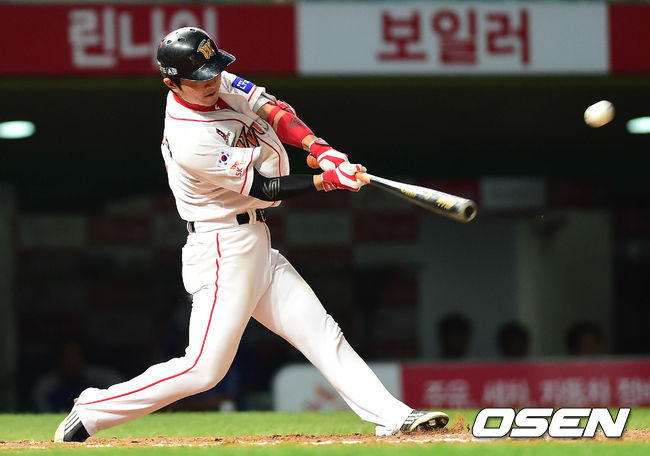 15일 오후 인천 문학구장에서 열린 '2014 한국야쿠르트 세븐 프로야구' SK 와이번스와 삼성 라이온즈의 경기 8회말 2사 2루 김성현이 1타점 2루타를 치고 있다.