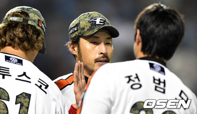 경기 종료 후 한화 김경언이 선수들과 승리의 기쁨을 나누고 있다. /sunday@osen.co.kr