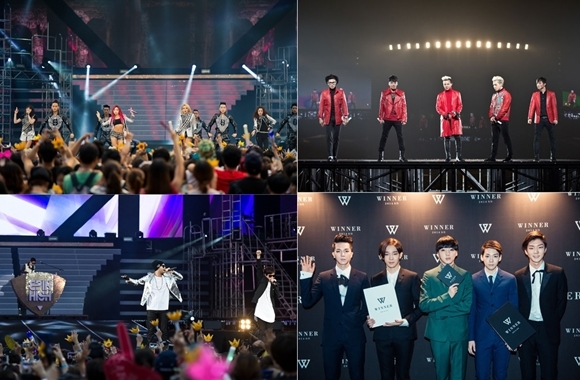 특히 이날 YG패밀리는 다양한 콜라보레이션 무대로 재미를 더했다. 먼저 위너는 '윈'에서 경합을 벌인 B팀과 함께 '저스트 어나더 보이' 무대를 꾸몄다. 경쟁이 아닌 합동 무대로 눈길을 끌었다. 지드래곤은 씨엘과 함께 '나쁜 기집애'를 '나쁜 머슴애'로 바꾼 특별한 무대를 완성해 환호를 받았다. '멘붕' 무대 역시 관객들의 열렬한 환호 속데 더욱 뜨거운 공연이 됐다.