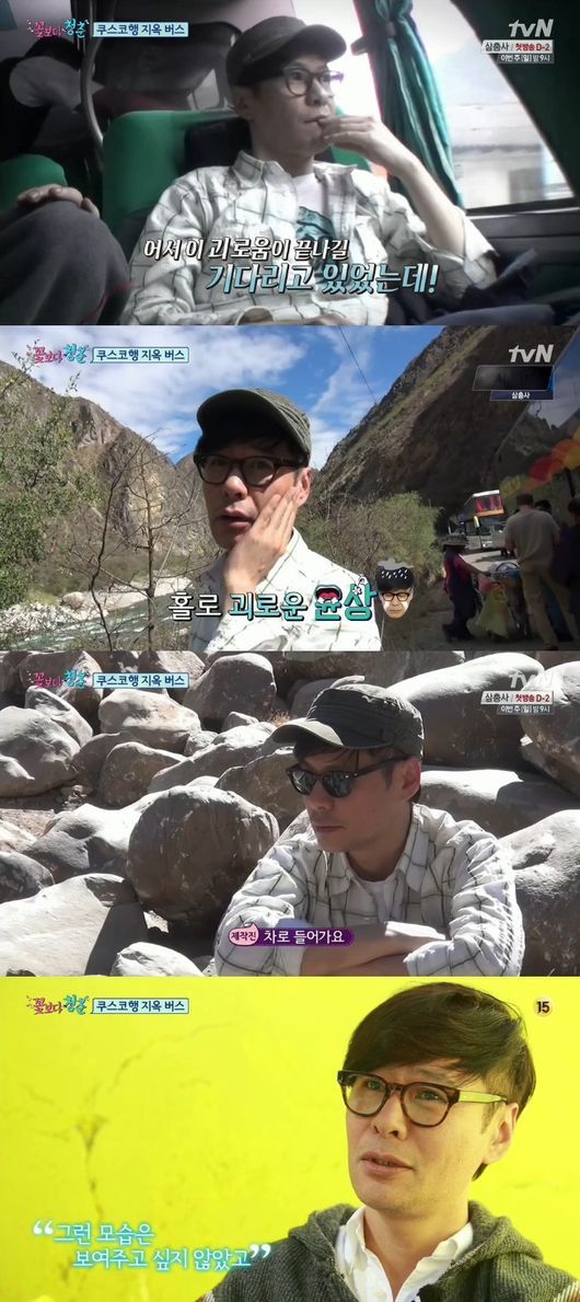 윤상은 15일 방송된 tvN 예능프로그램 ‘꽃보다 청춘’ 3회에서 쿠스코로 떠나는 중에 고산병에 시달렸다. 약을 미리 챙겨먹었지만 소용이 없었다. 10시간 넘게 두통에 시달린 그는 말할 힘도 없었다. 그는 “가장 연로한 티를 낸다”며 제작진에게 아쉬운 마음을 드러냈다.