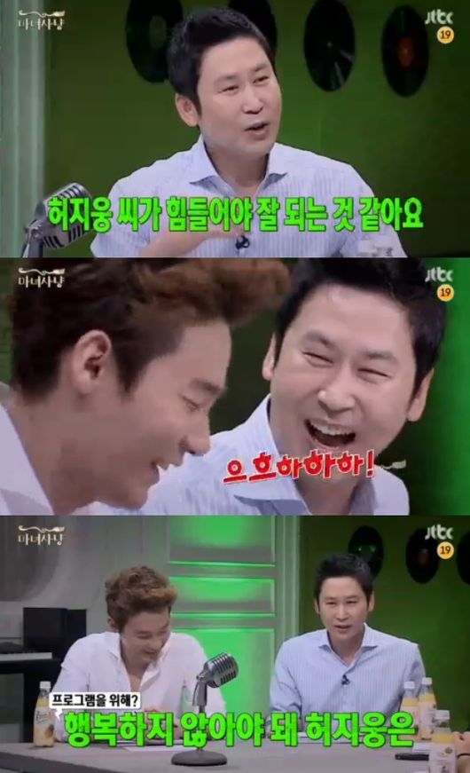'마녀사냥'의 신동엽이 허지웅이 불행해야 방송이 산다고 농담했다.