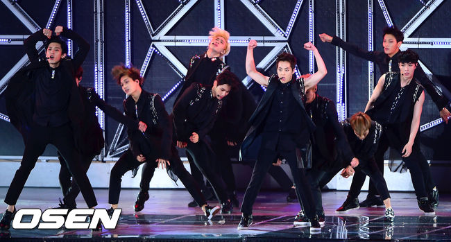 15일 오후 서울 상암동 서울월드컵경기장에서 열린 SM타운 라이브 월드투어 콘서트에서 그룹 엑소가 멋진 무대를 펼치고 있다