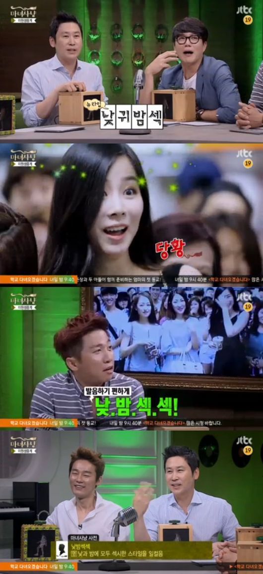 서울 신사역에서 진행된 이원중계에서 세 명의 여자가 카메라 앞에 나타났고 그 중 한 명이 "나는 낮에 귀여운 스타일이고 밤에 섹시하다"고 말하자 MC들이 "낮귀밤섹이다"고 말했다.