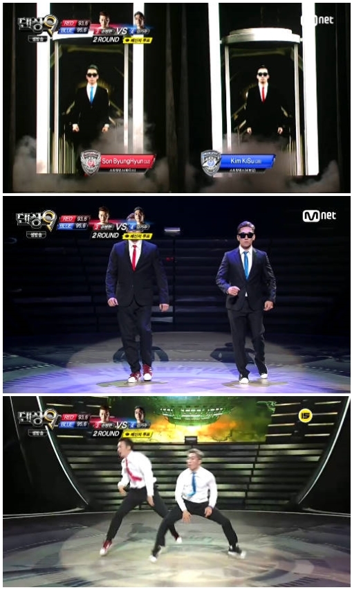 두번째 믹스매치 무대는 레드윙즈 손병현과 블루아이 김기수가 함께 했다. 두 사람은 검정 수트를 입고 무대 위에 올라 영화 '맨 인 블랙'을 연상케 하는 무대를 꾸몄다. 손병현은 평균 93.4점을, 김기수는 평균 95.0점을 심사위원으로부터 받았다.