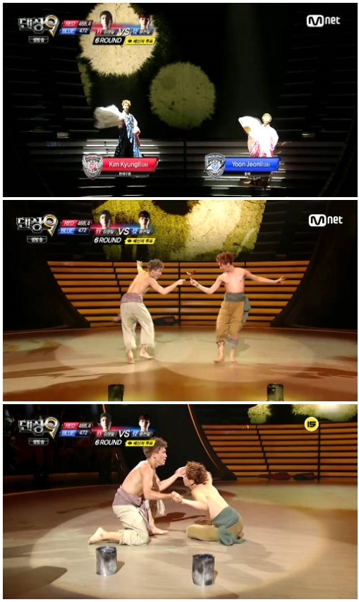 '댄싱9' 블루아이 윤전일이 믹스매치 6라운드에서 승리했다.