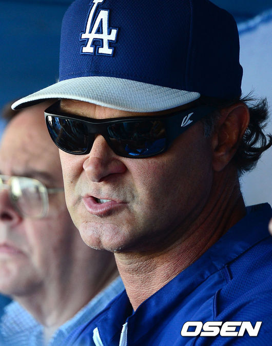 16일(한국시간) 미국 캘리포니아주 로스앤젤레스 다저스타디움에서 열리는 '2014 메이저리그' LA 다저스와 밀워키 브루어스의 경기에 앞서 다저스 돈 매팅리 감독이 인터뷰를 하고 있다.