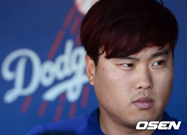 16일(한국시간) 미국 캘리포니아주 로스앤젤레스 다저스타디움에서 열리는 '2014 메이저리그' LA 다저스와 밀워키 브루어스의 경기에 앞서 부상자 명단에 이름을 올린 다저스 류현진이 인터뷰를 하고 있다.