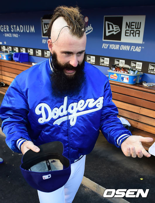 다저스 윌슨이 톡특한 헤어스타일을 선보이며 클럽하우스로 이동하고 있다.