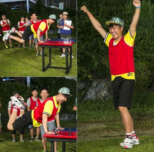 김종민은 팔씨름을 하기 위해 테이블 앞에 섰다는 이유를 잊어버리기라도 한 듯 마치 기계체조의 한 장면을 보는 듯한 준비자세를 취해 웃음을 자아내는가 하면, 그가 발을 차는 자세가 ‘덩기덕쿵덕’이라는 작전과 절묘하게 맞아 떨어져 촬영장을 웃음바다로 만들었다는 후문이다.