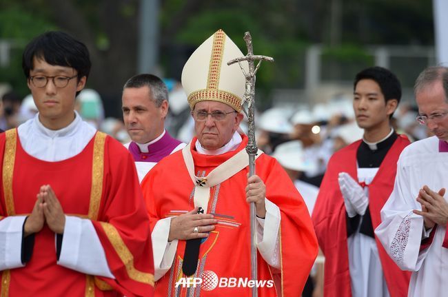 한편, 14일 한국을 찾은 프란치스코 교황은 14일 서울 공항에 도착한 교황은 밝은 얼굴로 자신을 환영하는 이들과 한 명 한 명 악수를 나누던 중 발걸음을 멈추고 자신의 손을 붙잡고 눈물을 흘리는 이들이 세월호 참사 유가족들이란 설명을 듣고는 왼손을 가슴에 얹었다.