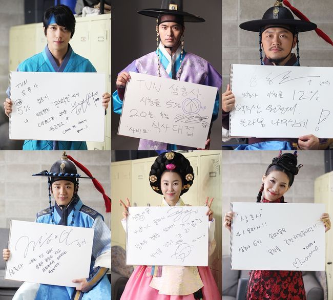 극을 한층 돋보이게 할 여배우 서현진, 유인영은 각각 “시청률 4.8% 돌파 시 광화문 경복궁 앞에서 복색을 갖추고 프리허그”, “시청률 4% 돌파 시 삼총사 6인의 손때 묻은 물건들을 증정하겠다”라는 공약을 내세워 기대감을 더하고 있다.