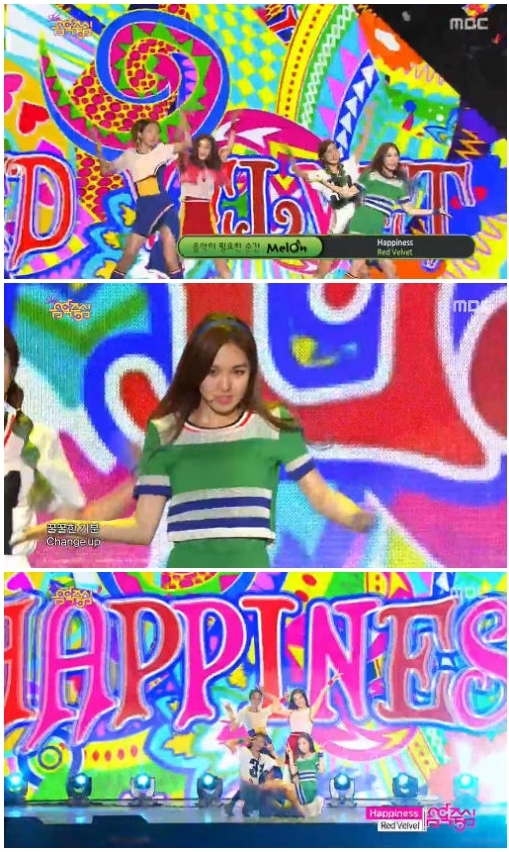 레드벨벳는 16일 방송된 MBC 가요프로그램 '쇼!음악중심'에서 '행복'을 열창했다.