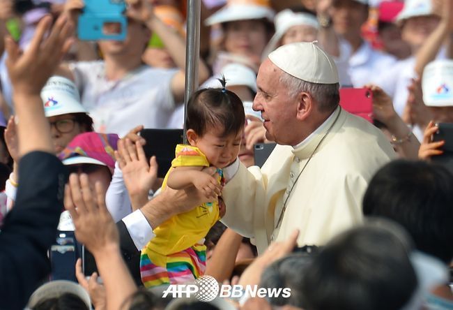 방한 사흘째인 프란치스코 교황이 16일 오전 10시 124위의 순교자들이 천주교 복자로 시성되는 시복미사를 열었다. 교황은 시복식 직전 카퍼레이드를 갖고 신도들은 만났다.