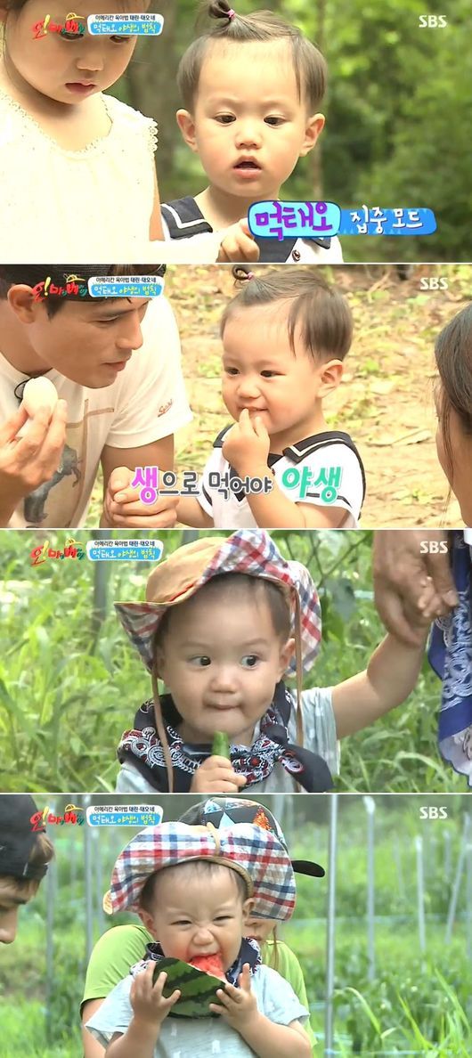 [OSEN=조민희 인턴기자] 배우 리키김과 류승주의 아들 김태오가 야생에서도 변함없는 먹신의 모습을 선보였다.