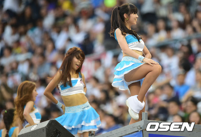 두산 치어리더들이 멋진 공연을 펼치고 있다.