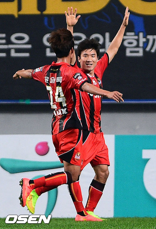 16일 서울 상암동 서울월드컵경기장에서 열린 2014 현대오일뱅크 K리그 클래식 FC 서울과 인천 유나이티드의 경기, 전반 서울 고요한이 추가골을 넣고 기뻐하고 있다