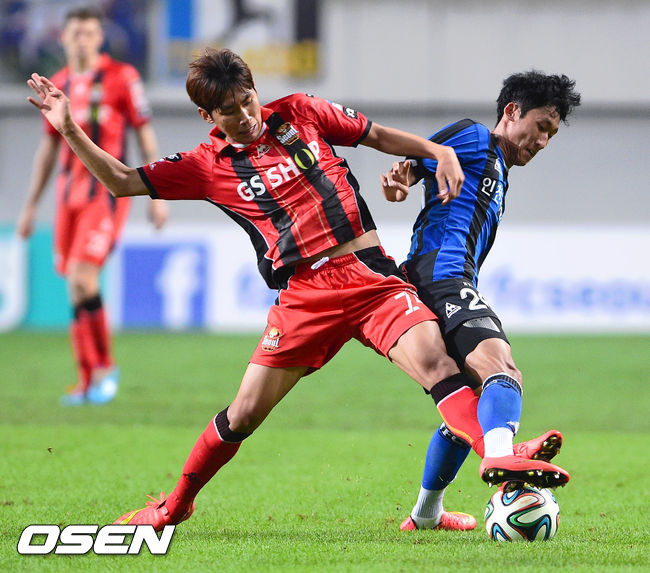 16일 서울 상암동 서울월드컵경기장에서 열린 2014 현대오일뱅크 K리그 클래식 FC 서울과 인천 유나이티드의 경기, 후반 서울 윤일록과 인천 김용환이 볼을 다투고 있다.
