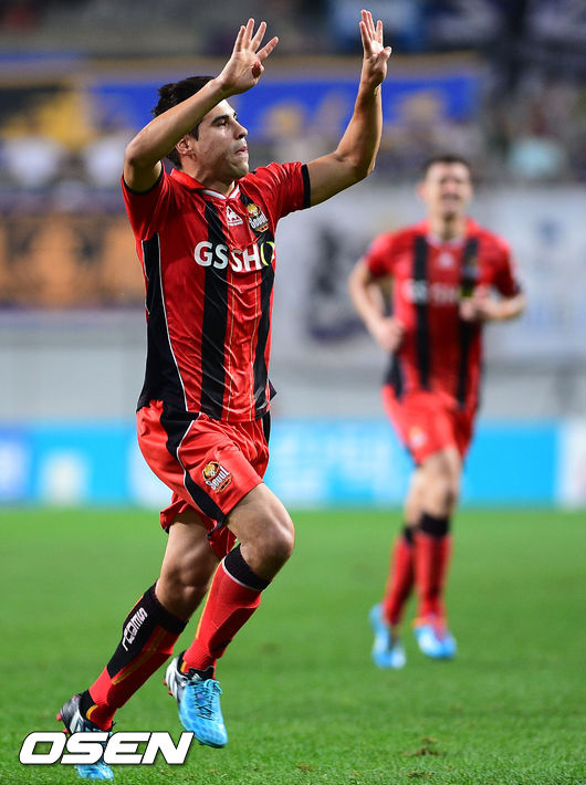 16일 서울 상암동 서울월드컵경기장에서 열린 2014 현대오일뱅크 K리그 클래식 FC 서울과 인천 유나이티드의 경기, 후반 서울 몰리나가 추가골을 넣고 환호하고 있다