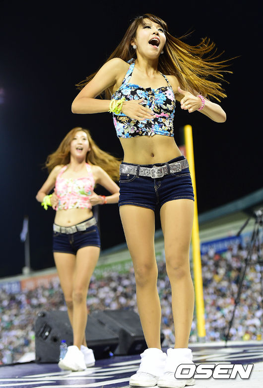 두산 치어리더들이 멋진 공연을 펼치고 있다.