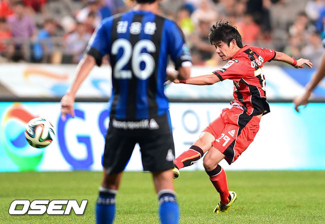 16일 서울 상암동 서울월드컵경기장에서 열린 2014 현대오일뱅크 K리그 클래식 FC 서울과 인천 유나이티드의 경기, 후반 서울 이상협이 추가골을 넣고 있다.