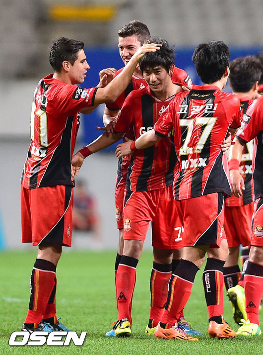 16일 서울 상암동 서울월드컵경기장에서 열린 2014 현대오일뱅크 K리그 클래식 FC 서울과 인천 유나이티드의 경기, 후반 서울 이상협이 추가골을 넣고 환호하고 있다.