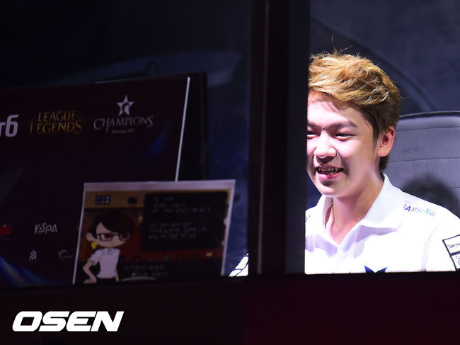 16일 오후 부산 해운대 특설무대에서 진행된 '핫식스 LOL챔피언스(이하 롤챔스)' 서머 2014 결승전'에서 삼성 블루 이다윤이 미소짓고 있다.