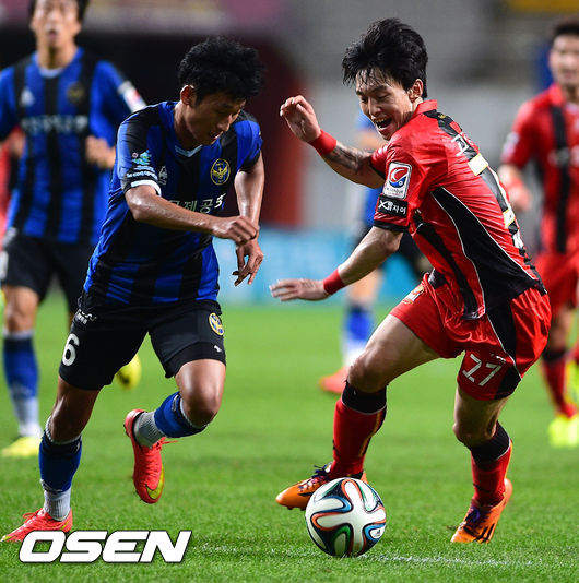 후반 서울 고광민과 인천 김용환이 볼을 다투고 있다/ soul1014@osen.co.kr