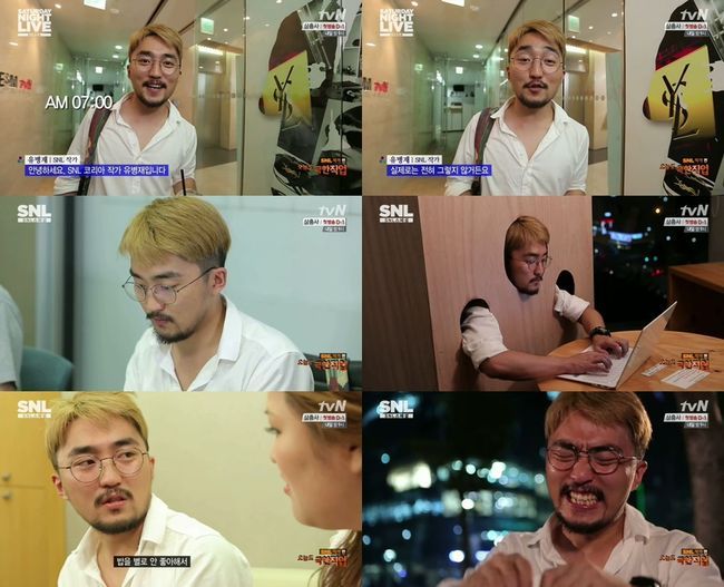 유병재는 16일 오후 방송된 tvN 'SNL 코리아'에서 'SNL 코리아' 작가로 생활하는 자신의 모습을 패러디해 보는 이들을 폭소케 했다.