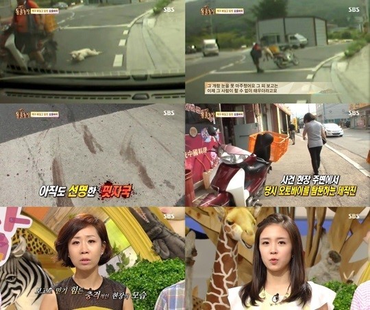17일 오전 방송된 SBS 'TV 동물농장'에서는 오토바이에 백구를 매달고 달리는 블랙박스 영상이 공개됐다. 블랙박스 영상을 제보한 시민은 사건 목격 당시의 끔찍했던 상황을 증언했다.